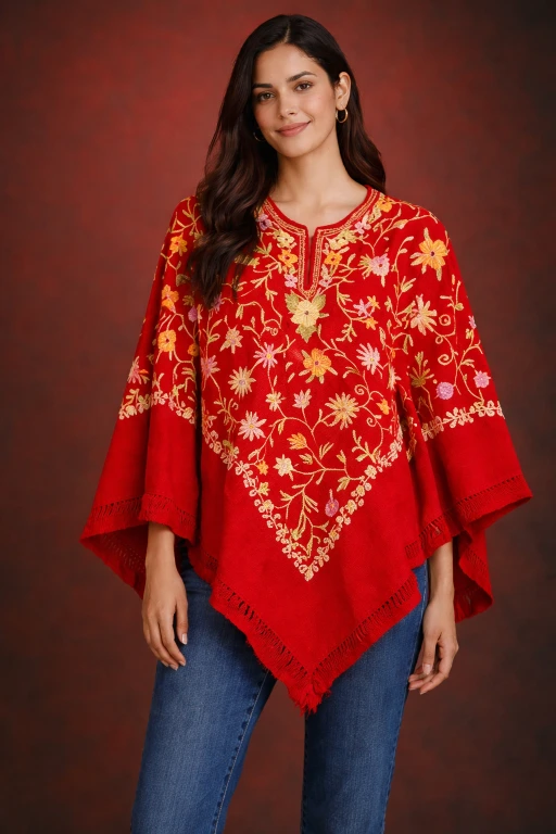 This handcrafted Kashmiri poncho brings together exquisite embroidery and timeless elegance. Where comfort meets heritage .