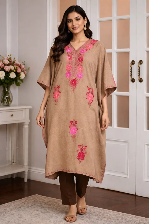 Elevate your winter wardrobe with our exquisite Kashmiri Kaftans – where comfort meets craftsmanship. The intricate embroidery is pure art!
