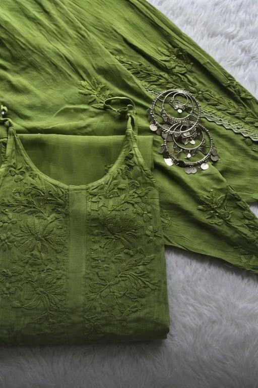 Be the first to review “Noodle Strap Chikankari Kurta and Dhoti Set – Dark Green”