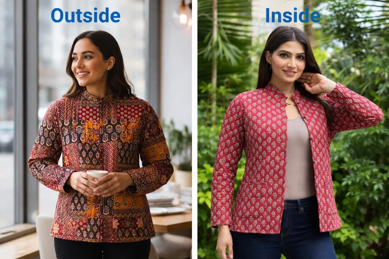 Stay cozy this winter with authentic Jaipuri hand-quilted jackets – stylish, warm & versatile!